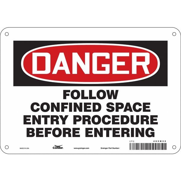 Safety Sign, Vertical Rectangle, Number of Printed Sides 1, English, Sign Format Traditional OSHA, Sign Legend Follow Confined Space Entry Procedure Before Entering, Sign Legend Background Color White, Sign Legend Style Text