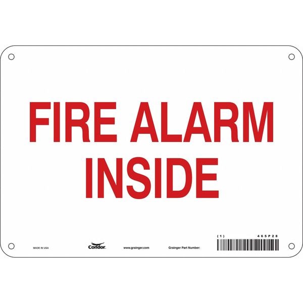 Safety Sign, Vertical Rectangle, Number of Printed Sides 1, English, Sign Legend Fire Alarm Inside, Sign Legend Background Color White, Sign Legend Style Text