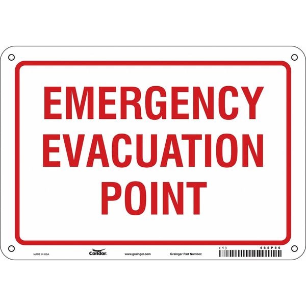 Safety Sign, Vertical Rectangle, Number of Printed Sides 1, English, Sign Legend Emergency Evacuation Point, Sign Legend Background Color White, Sign Legend Style Text