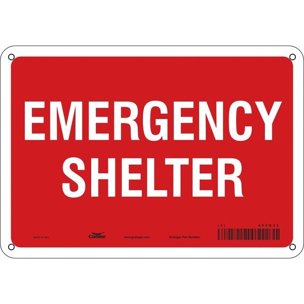 Safety Sign, Vertical Rectangle, Number of Printed Sides 1, English, Sign Legend Emergency Shelter, Sign Legend Background Color Red, Sign Legend Style Text