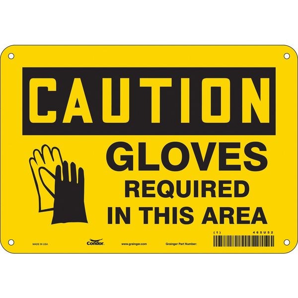 Safety Sign, Vertical Rectangle, Number of Printed Sides 1, English, Sign Format Traditional OSHA, Sign Legend Gloves Required In This Area, Sign Legend Background Color Yellow, Sign Legend Style Symbol and Text