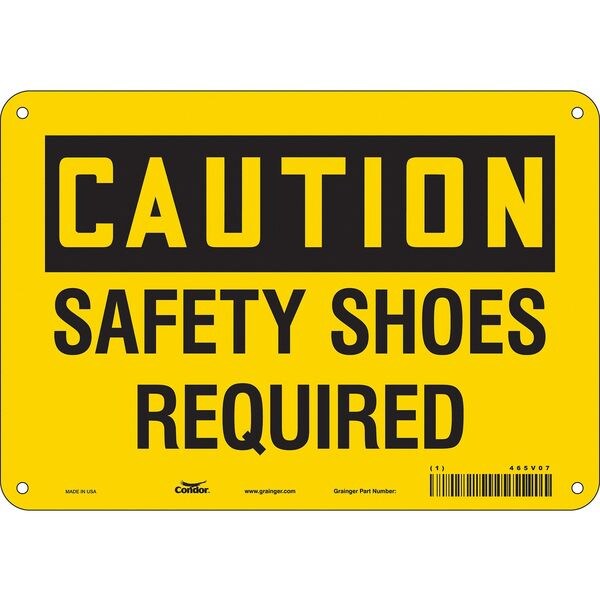 Safety Sign, Vertical Rectangle, Number of Printed Sides 1, English, Sign Format Traditional OSHA, Sign Legend Safety Shoes Required, Sign Legend Background Color Yellow, Sign Legend Style Text