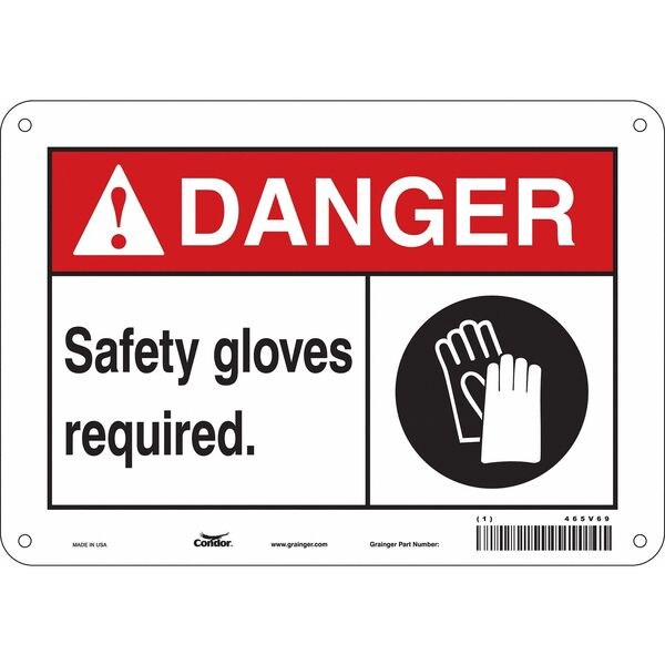 Safety Sign, Vertical Rectangle, Number of Printed Sides 1, English, Sign Format ANSI/OSHA Format, Sign Legend Safety Gloves Required., Sign Legend Background Color White, Sign Legend Style Symbol and Text