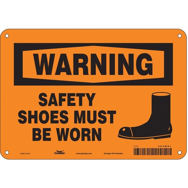 Safety Sign, Vertical Rectangle, Number of Printed Sides 1, English, Sign Format Traditional OSHA, Sign Legend Safety Shoes Must Be Worn, Sign Legend Background Color Orange, Sign Legend Style Symbol and Text