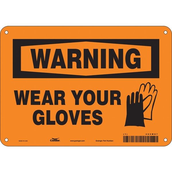 Safety Sign, Vertical Rectangle, Number of Printed Sides 1, English, Sign Format Traditional OSHA, Sign Legend Wear Your Gloves, Sign Legend Background Color Orange, Sign Legend Style Symbol and Text