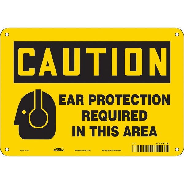 Safety Sign, Vertical Rectangle, Number of Printed Sides 1, English, Sign Format Traditional OSHA, Sign Legend Ear Protection Required In This Area, Sign Legend Background Color Yellow, Sign Legend Style Symbol and Text