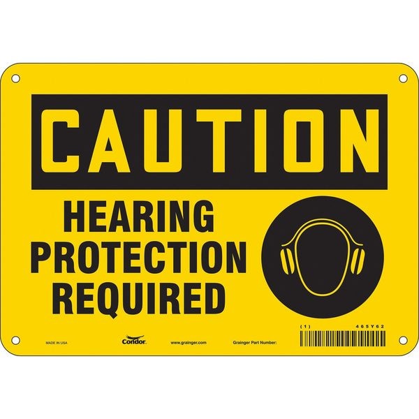 Safety Sign, Vertical Rectangle, Number of Printed Sides 1, English, Sign Format Traditional OSHA, Sign Legend Hearing Protection Required, Sign Legend Background Color Yellow, Sign Legend Style Symbol and Text