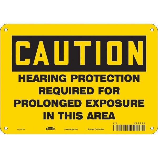 Safety Sign, Vertical Rectangle, Number of Printed Sides 1, English, Sign Format Traditional OSHA, Sign Legend Hearing Protection Required For Prolonged Exposure In This Area, Sign Legend Background Color Yellow, Sign Legend Style Text