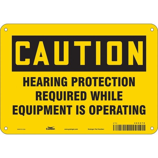 Safety Sign, Vertical Rectangle, Number of Printed Sides 1, English, Sign Format Traditional OSHA, Sign Legend Hearing Protection Required While Equipment Is Operating, Sign Legend Background Color Yellow, Sign Legend Style Text