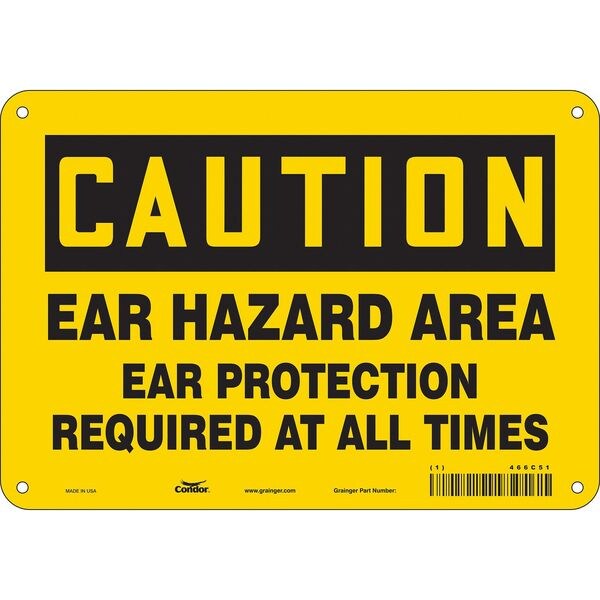 Safety Sign, Vertical Rectangle, Number of Printed Sides 1, English, Sign Format Traditional OSHA, Sign Legend Ear Hazard Area Ear Protection Required At All Times, Sign Legend Background Color Yellow, Sign Legend Style Text