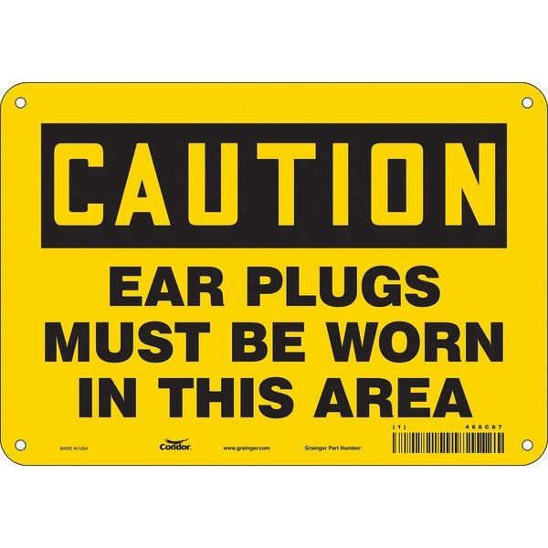 Safety Sign, Vertical Rectangle, Number of Printed Sides 1, English, Sign Format Traditional OSHA, Sign Legend Ear Plugs Must Be Worn In This Area, Sign Legend Background Color Yellow, Sign Legend Style Text