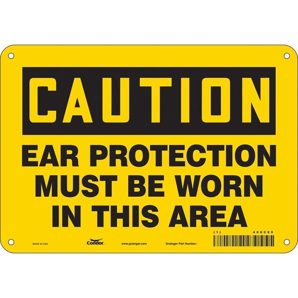 Safety Sign, Vertical Rectangle, Number of Printed Sides 1, English, Sign Format Traditional OSHA, Sign Legend Ear Protection Must Be Worn In This Area, Sign Legend Background Color Yellow, Sign Legend Style Text