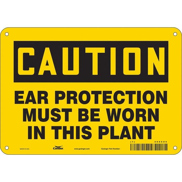 Safety Sign, Vertical Rectangle, Number of Printed Sides 1, English, Sign Format Traditional OSHA, Sign Legend Ear Protection Must Be Worn In This Plant, Sign Legend Background Color Yellow, Sign Legend Style Text