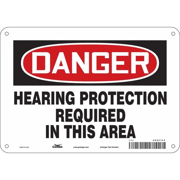 Safety Sign, Vertical Rectangle, Number of Printed Sides 1, English, Sign Format Traditional OSHA, Sign Legend Hearing Protection Required In This Area, Sign Legend Background Color White, Sign Legend Style Text