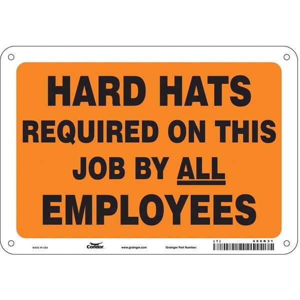 Safety Sign, Vertical Rectangle, Number of Printed Sides 1, English, Sign Format Other Format, Sign Legend Hard Hats Required On This Job By All Employees, Sign Legend Background Color Orange, Sign Legend Style Text