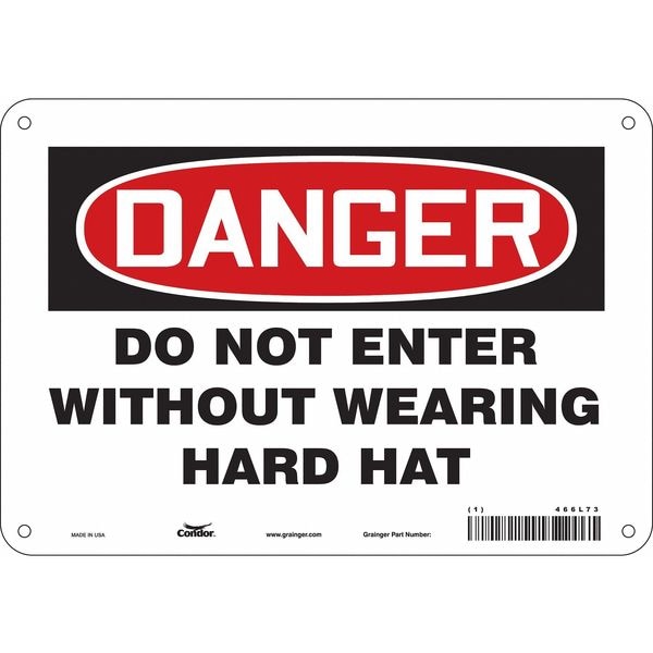 Safety Sign, Vertical Rectangle, Number of Printed Sides 1, English, Sign Format Traditional OSHA, Sign Legend Do Not Enter Without Wearing Hard Hat, Sign Legend Background Color White, Sign Legend Style Text