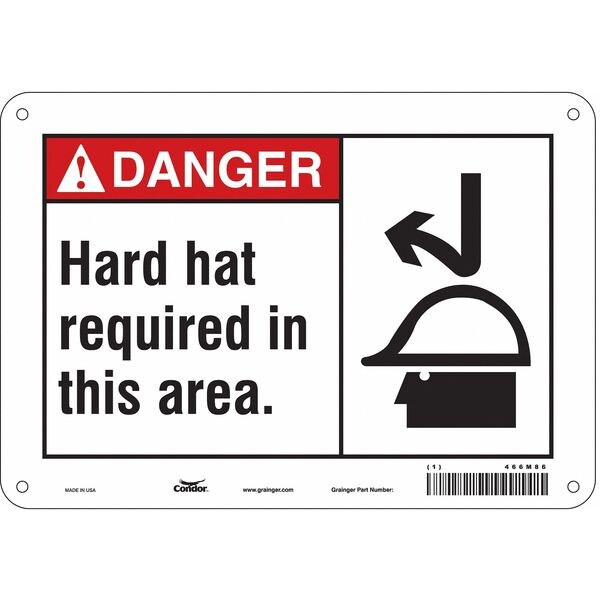 Safety Sign, Vertical Rectangle, Number of Printed Sides 1, English, Sign Format ANSI/OSHA Format, Sign Legend Hard Hat Required In This Area., Sign Legend Background Color White, Sign Legend Style Symbol and Text