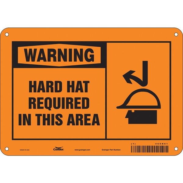 Safety Sign, Vertical Rectangle, Number of Printed Sides 1, English, Sign Format Traditional OSHA, Sign Legend Hard Hat Required In This Area, Sign Legend Background Color Orange, Sign Legend Style Symbol and Text