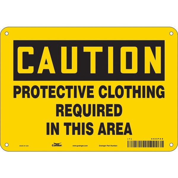 Safety Sign, Vertical Rectangle, Number of Printed Sides 1, English, Sign Format Traditional OSHA, Sign Legend Protective Clothing Required In This Area, Sign Legend Background Color Yellow, Sign Legend Style Text