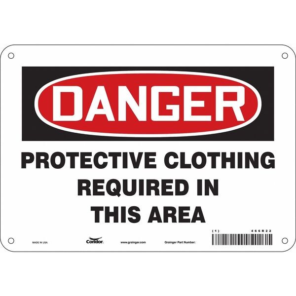 Safety Sign, Vertical Rectangle, Number of Printed Sides 1, English, Sign Format Traditional OSHA, Sign Legend Protective Clothing Required In This Area, Sign Legend Background Color White, Sign Legend Style Text