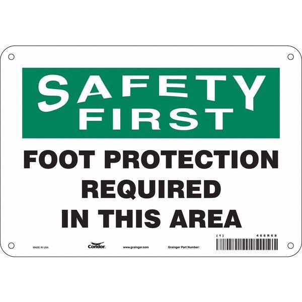 Safety Sign, Vertical Rectangle, Number of Printed Sides 1, English, Sign Format Traditional OSHA, Sign Legend Foot Protection Required In This Area, Sign Legend Background Color White, Sign Legend Style Text