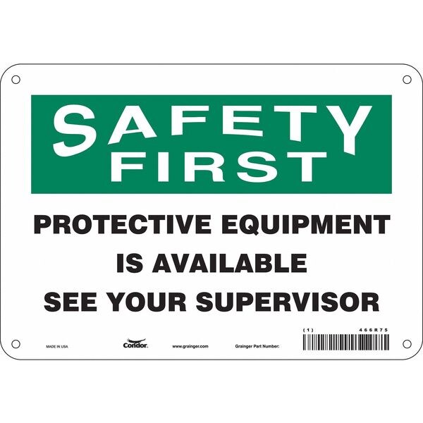 Safety Sign, Vertical Rectangle, Number of Printed Sides 1, English, Sign Format Traditional OSHA, Sign Legend Protective Equipment Is Available See Your Supervisor, Sign Legend Background Color White, Sign Legend Style Text