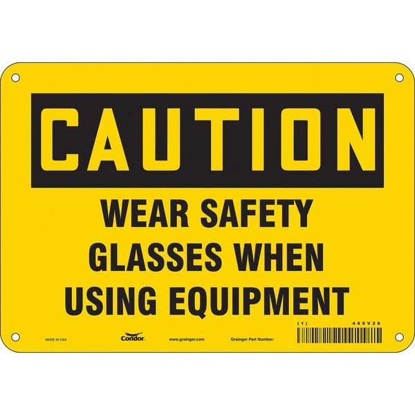 Safety Sign, Vertical Rectangle, Number of Printed Sides 1, English, Sign Format Traditional OSHA, Sign Legend Wear Safety Glasses When Using Equipment, Sign Legend Background Color Yellow, Sign Legend Style Text