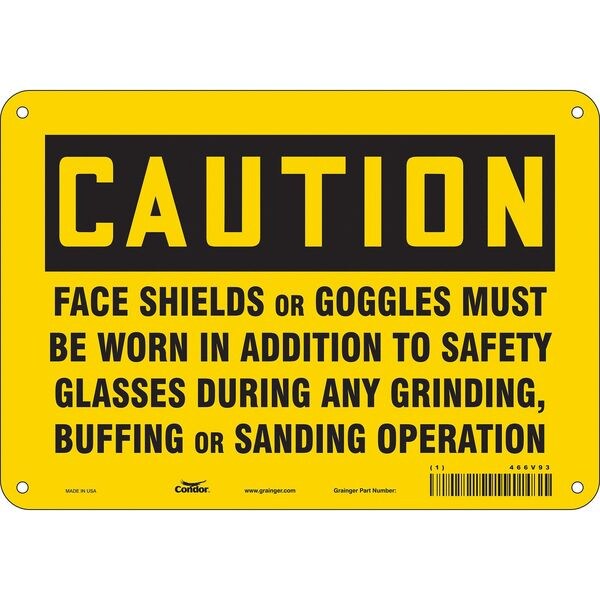 Safety Sign, Vertical Rectangle, Number of Printed Sides 1, English, Sign Format Traditional OSHA, Sign Legend Face Shields Or Goggles Must Be Worn In Addition To Safety Glasses During Any Grinding, Buffing Or Sanding Operation, Sign Legend Background Color Yellow, Sign Legend Style Text