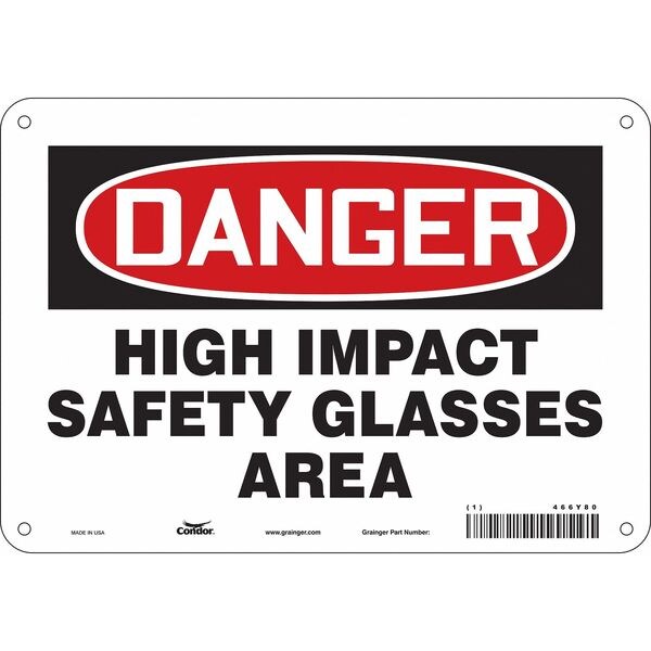 Safety Sign, Vertical Rectangle, Number of Printed Sides 1, English, Sign Format Traditional OSHA, Sign Legend High Impact Safety Glasses Area, Sign Legend Background Color White, Sign Legend Style Text