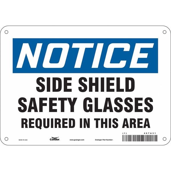 Safety Sign, Vertical Rectangle, Number of Printed Sides 1, English, Sign Format Traditional OSHA, Sign Legend Side Shield Safety Glasses Required In This Area, Sign Legend Background Color White, Sign Legend Style Text