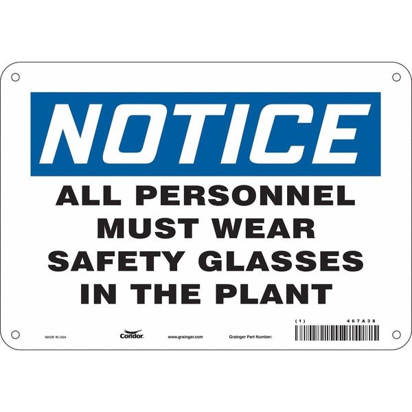 Safety Sign, Vertical Rectangle, Number of Printed Sides 1, English, Sign Format Traditional OSHA, Sign Legend All Personnel Must Wear Safety Glasses In The Plant, Sign Legend Background Color White, Sign Legend Style Text