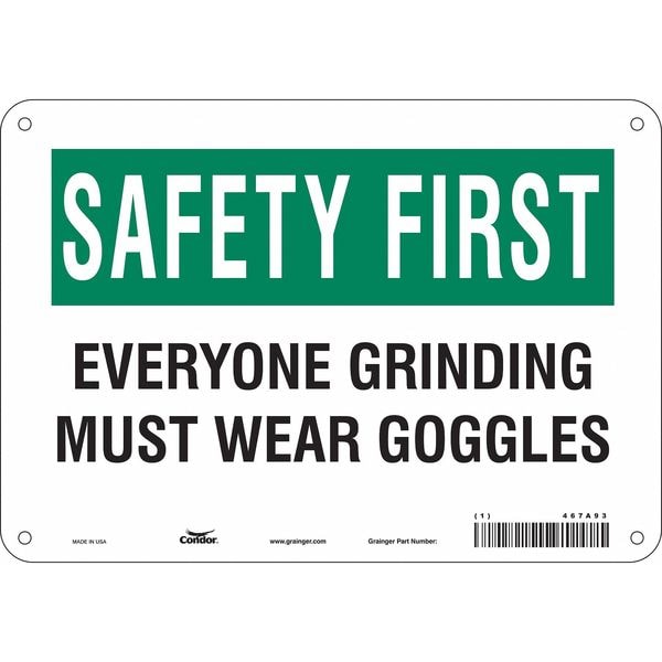 Safety Sign, Vertical Rectangle, Number of Printed Sides 1, English, Sign Format Traditional OSHA, Sign Legend Everyone Grinding Must Wear Goggles, Sign Legend Background Color White, Sign Legend Style Text