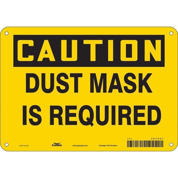 Safety Sign, Vertical Rectangle, Number of Printed Sides 1, English, Sign Format Traditional OSHA, Sign Legend Dust Mask Is Required, Sign Legend Background Color Yellow, Sign Legend Style Text
