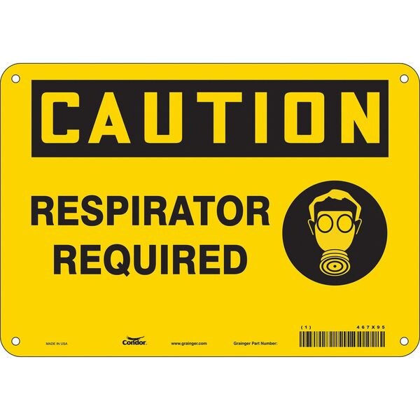 Safety Sign, Vertical Rectangle, Number of Printed Sides 1, English, Sign Format Traditional OSHA, Sign Legend Respirator Required, Sign Legend Background Color Yellow, Sign Legend Style Symbol and Text