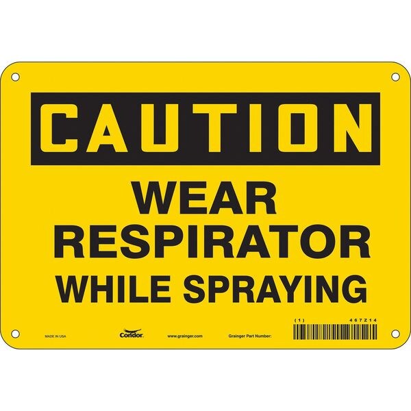 Safety Sign, Vertical Rectangle, Number of Printed Sides 1, English, Sign Format Traditional OSHA, Sign Legend Wear Respirator While Spraying, Sign Legend Background Color Yellow, Sign Legend Style Text