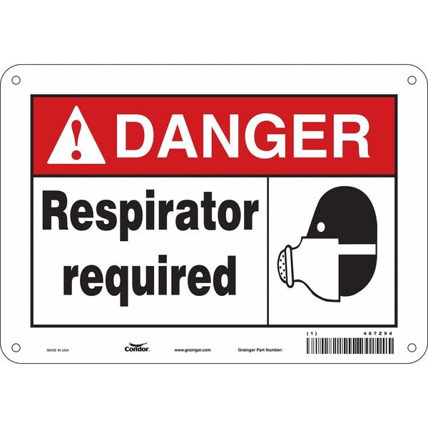 Safety Sign, Vertical Rectangle, Number of Printed Sides 1, English, Sign Format ANSI/OSHA Format, Sign Legend Respirator Required, Sign Legend Background Color White, Sign Legend Style Symbol and Text