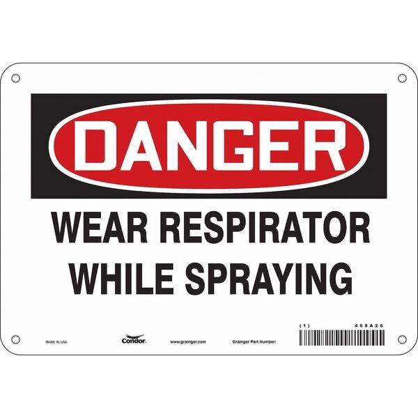 Safety Sign, Vertical Rectangle, Number of Printed Sides 1, English, Sign Format Traditional OSHA, Sign Legend Wear Respirator While Spraying, Sign Legend Background Color White, Sign Legend Style Text