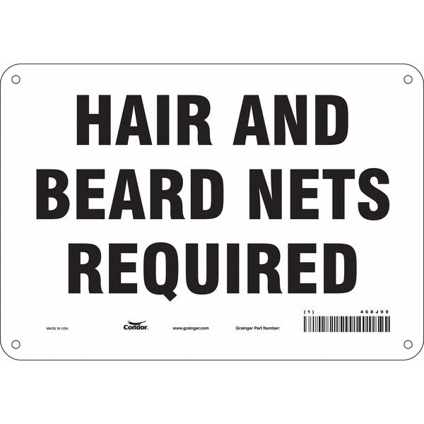Safety Sign, Vertical Rectangle, Number of Printed Sides 1, English, Sign Format Other Format, Sign Legend Hair And Beard Nets Required, Sign Legend Background Color White, Sign Legend Style Text