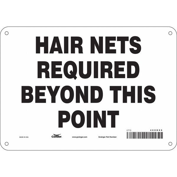 Safety Sign, Vertical Rectangle, Number of Printed Sides 1, English, Sign Legend Hair Nets Required Beyond This Point, Sign Legend Background Color White, Sign Legend Style Text