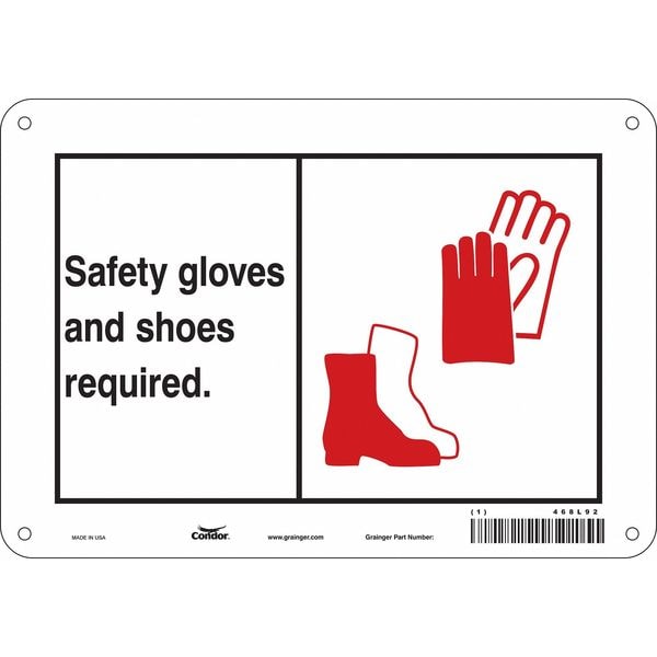 Safety Sign, Vertical Rectangle, Number of Printed Sides 1, English, Sign Format Other Format, Sign Legend Safety Gloves And Shoes Required, Sign Legend Background Color White, Sign Legend Style Symbol and Text
