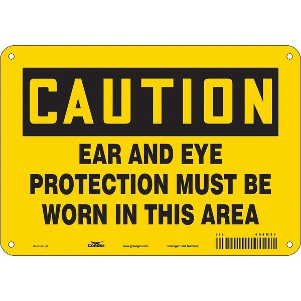 Safety Sign, Vertical Rectangle, Number of Printed Sides 1, English, Sign Format Traditional OSHA, Sign Legend Ear And Eye Protection Must Be Worn In This Area, Sign Legend Background Color Yellow, Sign Legend Style Text