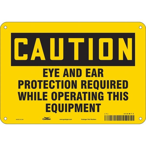 Safety Sign, Vertical Rectangle, Number of Printed Sides 1, English, Sign Format Traditional OSHA, Sign Legend Eye And Ear Protection Required While Operating This Equipment, Sign Legend Background Color Yellow, Sign Legend Style Text