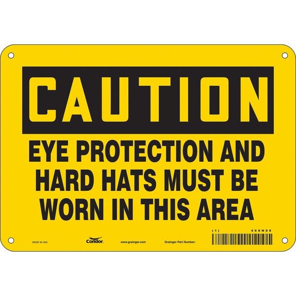 Safety Sign, Vertical Rectangle, Number of Printed Sides 1, English, Sign Format Traditional OSHA, Sign Legend Eye Protection And Hard Hats Must Be Worn In This Area, Sign Legend Background Color Yellow, Sign Legend Style Text