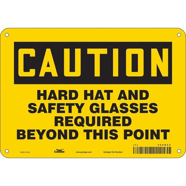 Safety Sign, Vertical Rectangle, Number of Printed Sides 1, English, Sign Format Traditional OSHA, Sign Legend Hard Hat And Safety Glasses Required Beyond This Point, Sign Legend Background Color Yellow, Sign Legend Style Text