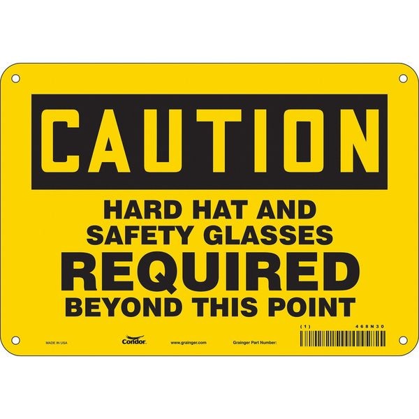 Safety Sign, Vertical Rectangle, Number of Printed Sides 1, English, Sign Format Traditional OSHA, Sign Legend Hard Hat And Safety Glasses Required Beyond This Point, Sign Legend Background Color Yellow, Sign Legend Style Text