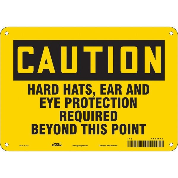 Safety Sign, Vertical Rectangle, Number of Printed Sides 1, English, Sign Format Traditional OSHA, Sign Legend Hard Hats, Ear And Eye Protection Required Beyond This Point, Sign Legend Background Color Yellow, Sign Legend Style Text
