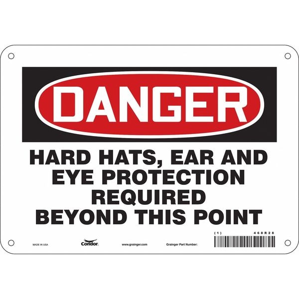 Safety Sign, Vertical Rectangle, Number of Printed Sides 1, English, Sign Format Traditional OSHA, Sign Legend Hard Hats, Ear And Eye Protection Required Beyond This Point, Sign Legend Background Color White, Sign Legend Style Text