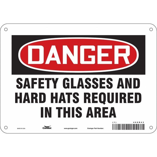 Safety Sign, Vertical Rectangle, Number of Printed Sides 1, English, Sign Format Traditional OSHA, Sign Legend Safety Glasses And Hard Hats Required In This Area, Sign Legend Background Color White, Sign Legend Style Text