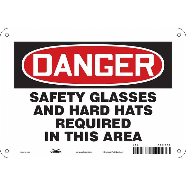 Safety Sign, Vertical Rectangle, Number of Printed Sides 1, English, Sign Format Traditional OSHA, Sign Legend Safety Glasses And Hard Hats Required In This Area, Sign Legend Background Color White, Sign Legend Style Text
