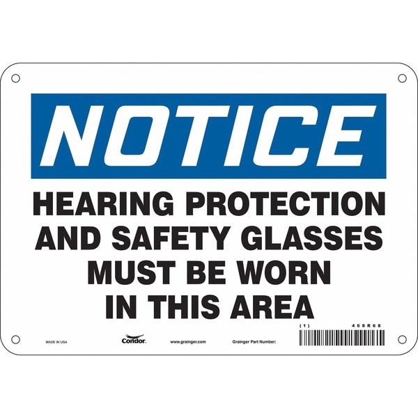Safety Sign, Vertical Rectangle, Number of Printed Sides 1, English, Sign Format Traditional OSHA, Sign Legend Hearing Protection And Safety Glasses Must Be Worn In This Area, Sign Legend Background Color White, Sign Legend Style Text